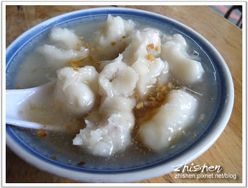 花枝塊也是相當小巧可愛,小碗內約莫7~8塊,在淺碗內看起來相當豐富…湯頭嚐起來是滿滿的花枝鮮味,微微的甜,上頭的蒜酥點綴氣味,吃起來完全不膩口!沒有其它配料的點餟,它走的是單純的路線…